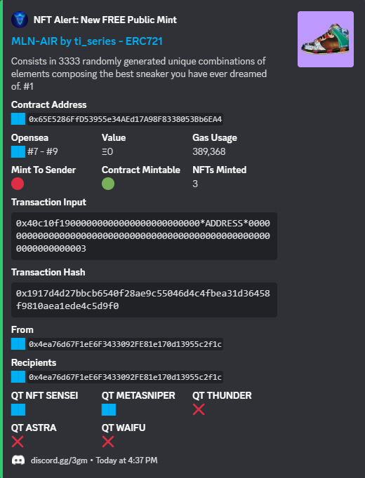 Alerts differ between paid and free mint and also notifies of a collection going from a paid to a free sale.\